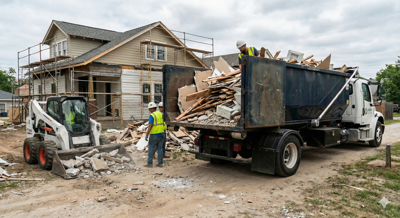 We specialize in the removal of all types of building materials, including drywall, flooring, wood scraps, roofing shingles, and tiles. Forget the hassle and eyesore of a rusty dumpster sitting in your driveway for weeks. Our team arrives, loads the debris, and hauls it away in one visit. We prioritize construction waste recycling, ensuring that metal, wood, and concrete are diverted from landfills whenever possible.